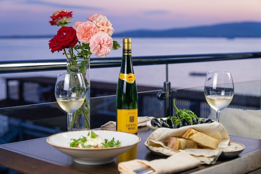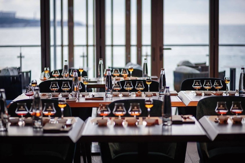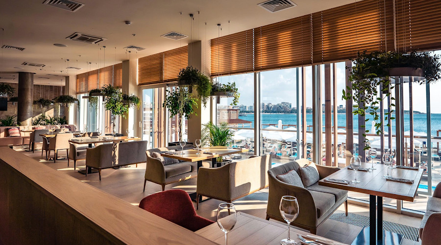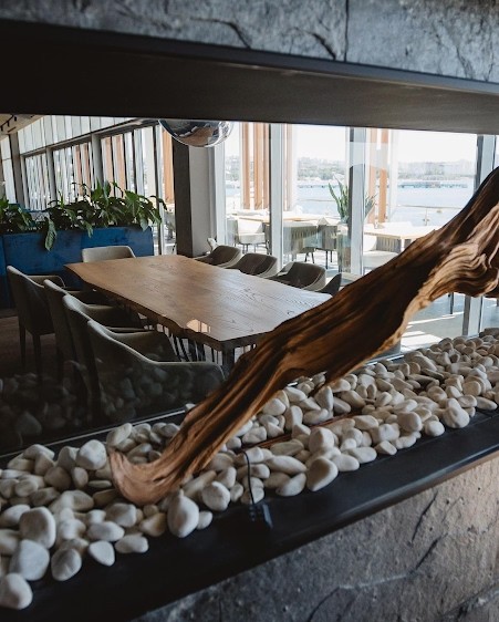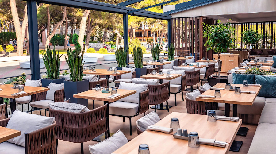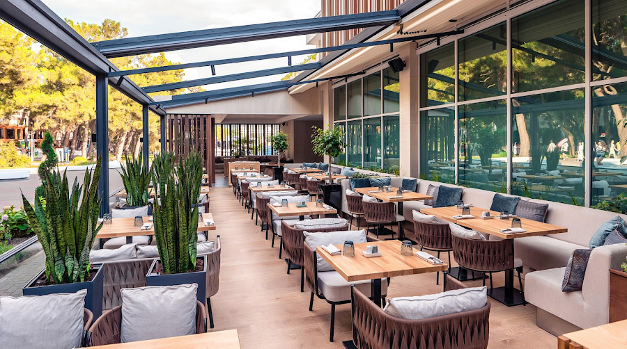 Вместе с открытой террасой общая вместимость 170 чел.